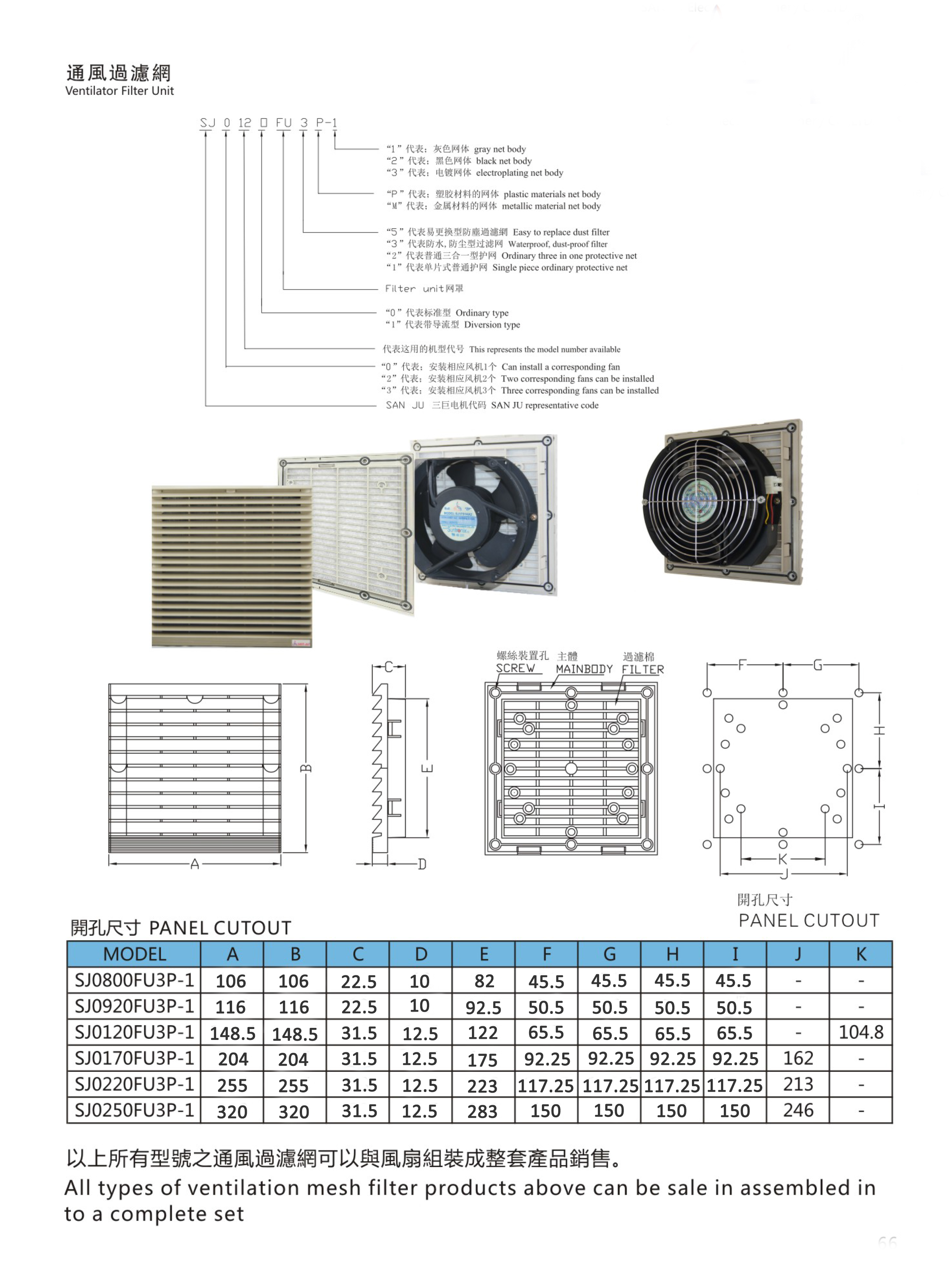 所有型號通風過濾網(wǎng)可以與風扇組裝成整套產(chǎn)品銷售